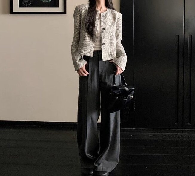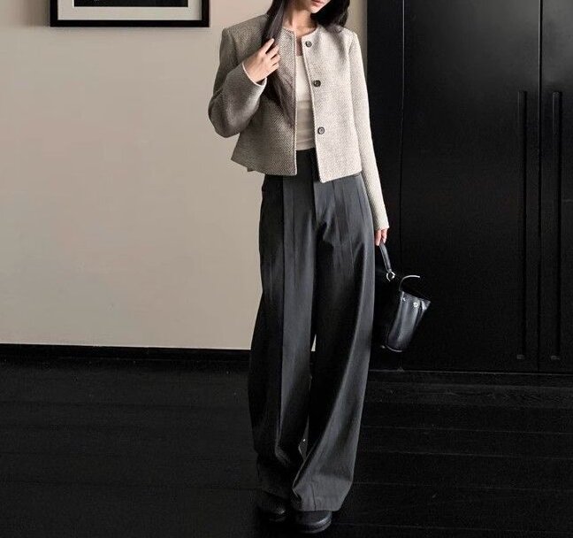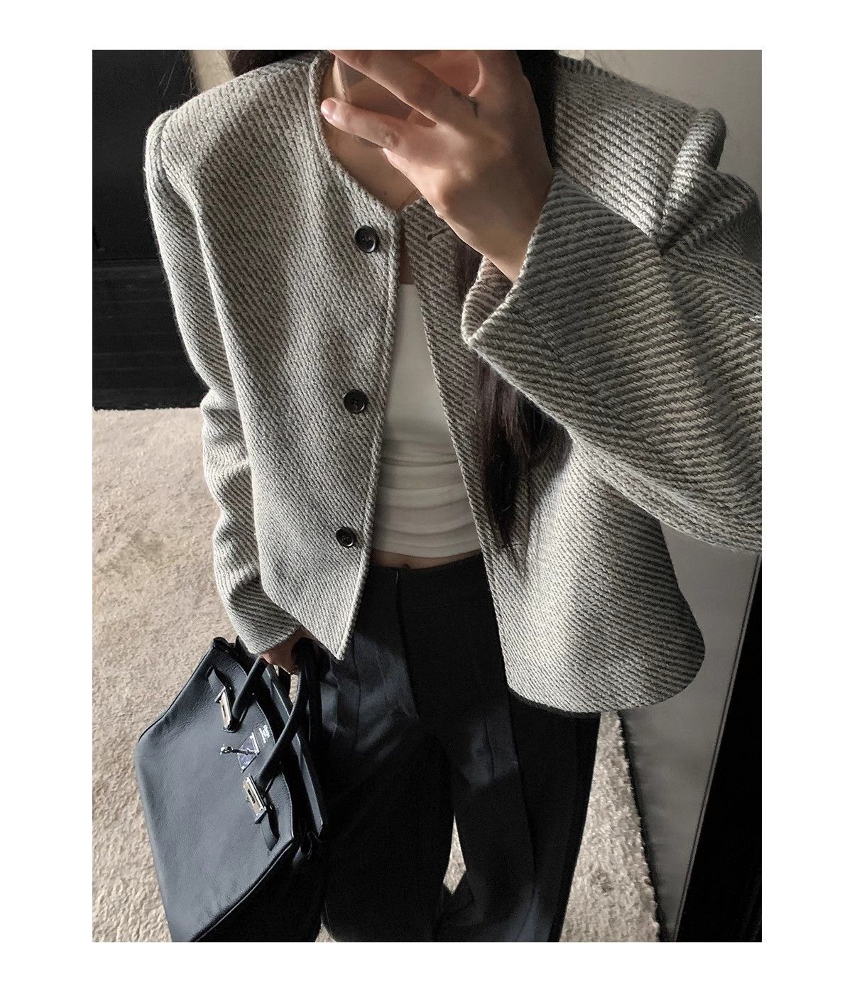 Retro Crew Neck Single Row Top Striped Loose-fitting Short Coat