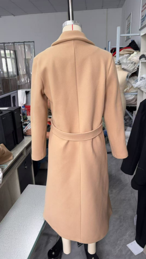 Women's Autumn And Winter Style Casual Camel Lace-up Coat