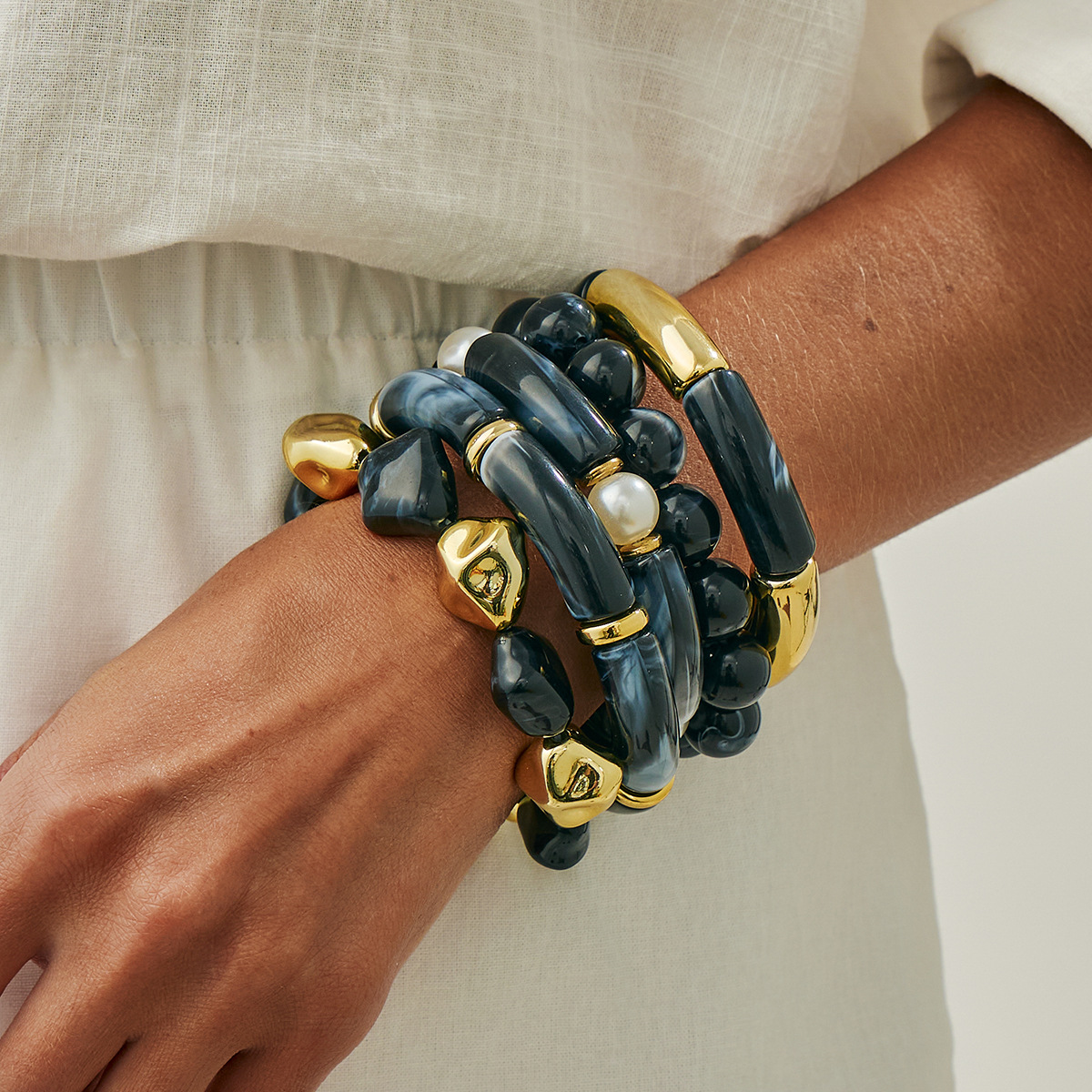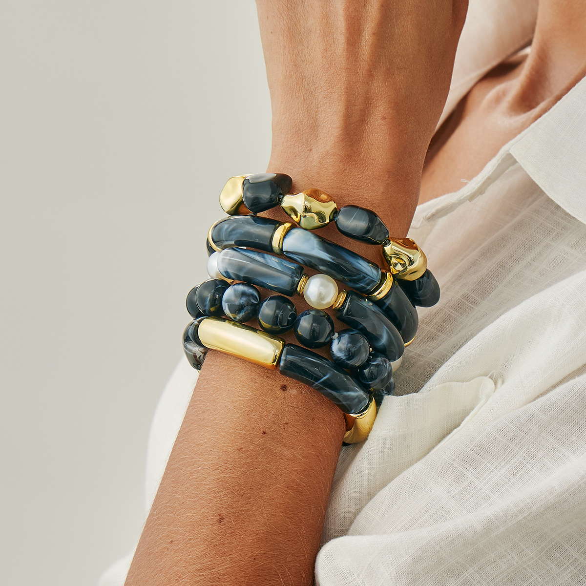 Beaded Blooming Resin Bamboo Elbow Bracelet