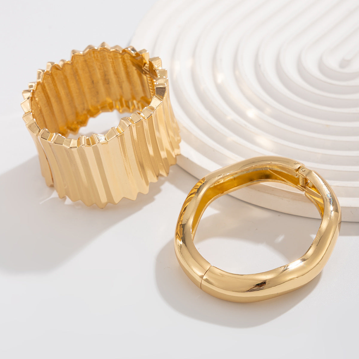 Punk Metal Texture Vertical Pattern Wide Surface Spring Bracelet For Women