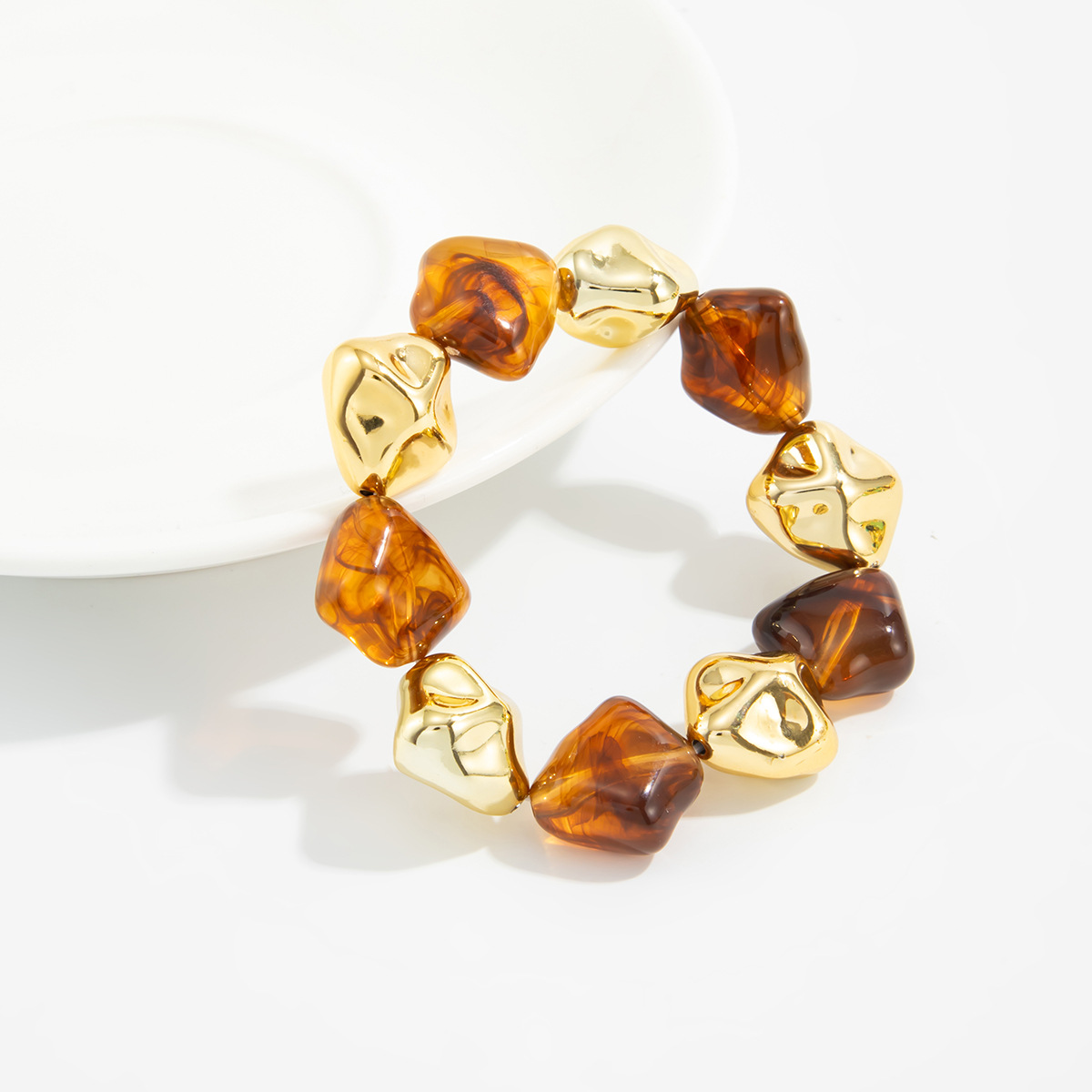 Vintage Beaded Amber Blooming Resin Wide Bracelet