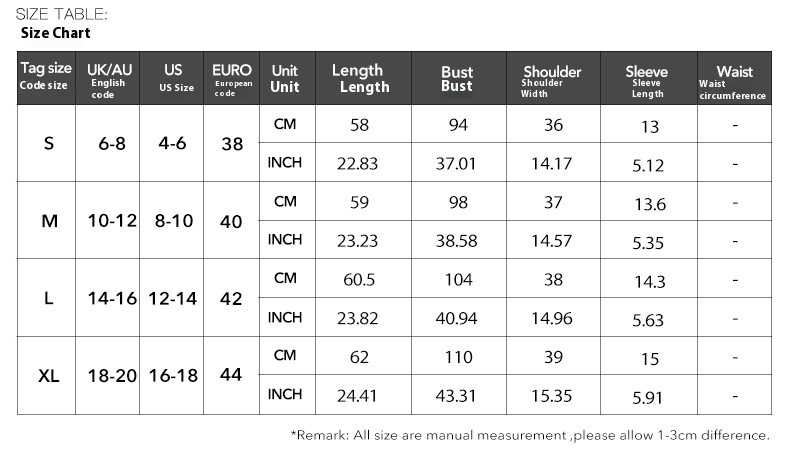 1. Asian sizes are 1 to 2 sizes smaller than European and American people. Choose the larger size if your size between two sizes. Please allow 2-3cm differences due to manual measurement. 2. Please check the size chart carefully before you buy the item, if you don't know how to choose size, please contact our customer service. 3.As you know, the different computers display colors differently, the color of the actual item may vary slightly from the following images.